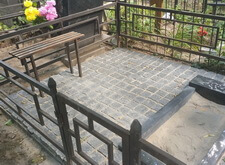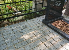 На данном объекте нам надо было отремонтировать некоторые элементы места захоронения, положить брусчатку и заменить одно из надгробий.