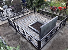 В ходе работы над данным заказом нам предстояло: переустановить покосившийся широкий памятник из чёрного гранита; покрасить обветшавшее от времени ограждение; обновить надписи на надгробье; установить прямоугольный цветник, а также выложить землю на участке гранитной брусчаткой. Приехав на место захоронения мы застали могилу в заброшенном состоянии: на всей её территории росла сорная трава, практически полностью скрывавшая памятник.